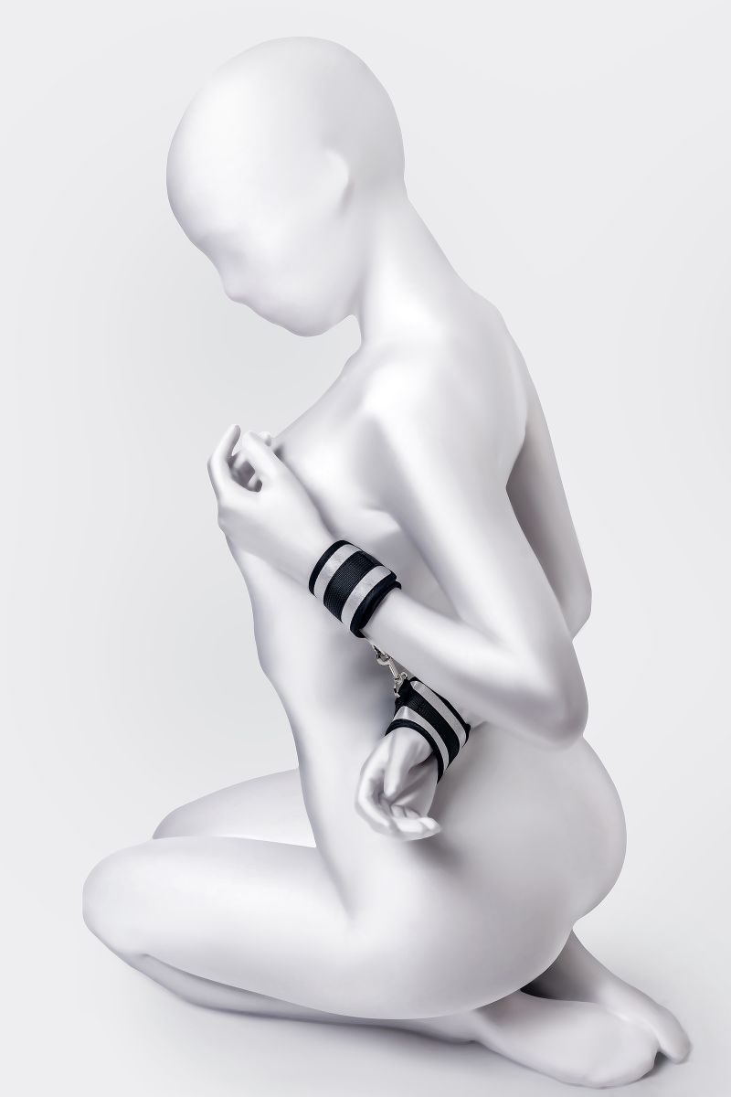 Наручники — классический предмет для игры в подчинение, обязательный для начинающих и опытных поклонников БДСМ. Блестящий во всех смыслах аксессуар для ограничения свободы: сатиновый материал поблескивает, когда на него падает свет. Необычное сочетание серебристого и черного, совсем нехарактерное для классического исполнения аксессуаров в стиле БДСМ, придает изюминку и новизну. Подчиненный с таким аксессуаром выглядит неотразимым. Застежка велкро позволяет зафиксировать руки любого размера. Между собой наручники скрепляются карабинами, практически не оставляя свободы действий. Никакого послабления, только полное подчинение своему Доминанту, где бы ни были зафиксированы руки: впереди или за спиной. Используйте дополнительно цепочку для расширенных возможностей фиксации положения рук. Начните игру в подчинение с этим аксессуаром, и вы поймете, как развивать свою чувственность с помощью ограничения свободы одного из партнеров. Ширина - 5,5 см. Длина сцепки - 8 см.