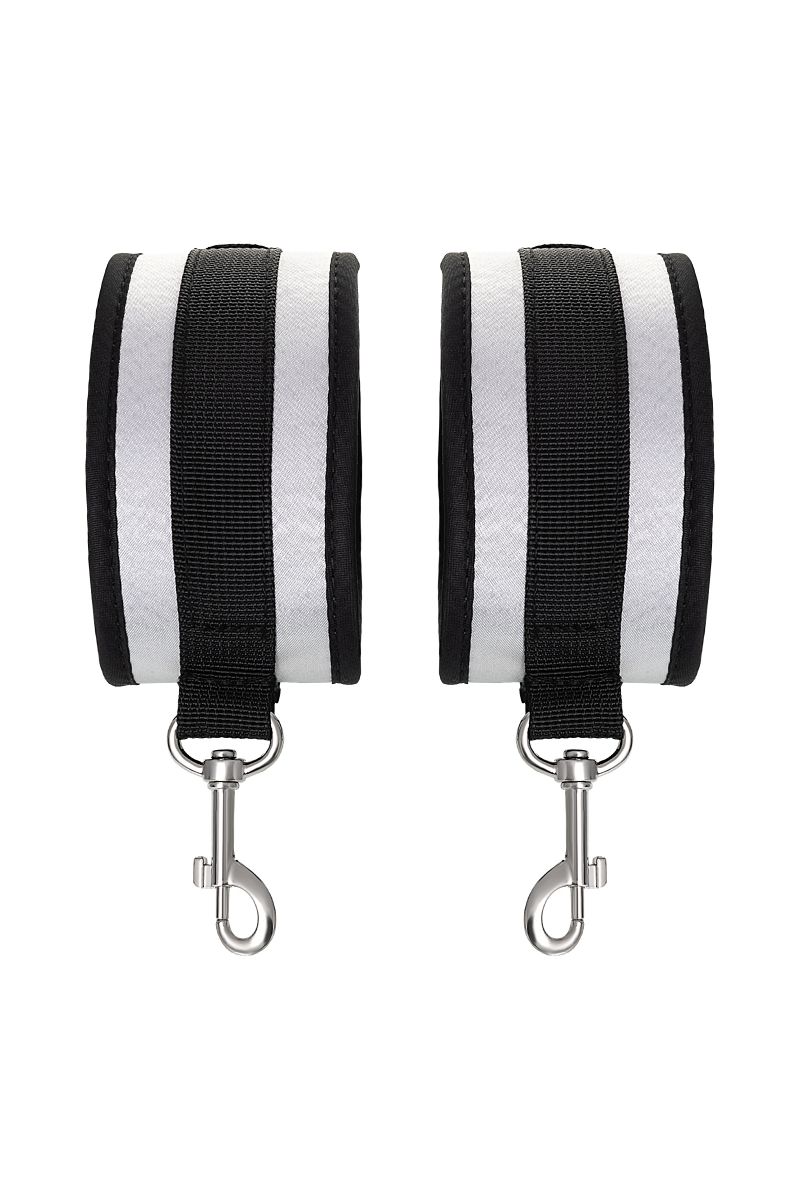 Оковы — классический предмет для игры в подчинение, обязательный для начинающих и опытных поклонников БДСМ. Блестящий во всех смыслах аксессуар для ограничения свободы – сатиновый материал поблескивает, когда на него падает свет. Необычное сочетание серебристого и черного, совсем нехарактерное для классического исполнения аксессуаров в стиле БДСМ, придает изюминку и новизну. Подчиненный с таким аксессуаром выглядит неотразимым. Застежка велкро позволяет зафиксировать ноги любого размера. Между собой поножи скрепляются карабинами, практически не оставляя свободы действий. Никакого послабления, только полное подчинение своему Доминанту. Используйте дополнительно цепочку для расширенных возможностей фиксации положения ног. Начните игру в подчинение с этим аксессуаром, и вы поймете, как развивать свою чувственность с помощью ограничения свободы одного из партнеров. Ширина - 5,5 см. Длина сцепки - 8 см.